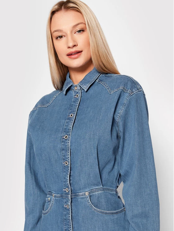 Pepe Jeans Γυναίκες Φορέματα σε Στυλ Πουκάμισο & Σεμιζιέ Φόρεμα τζιν Jane PL953063 Μπλε Regular Fit