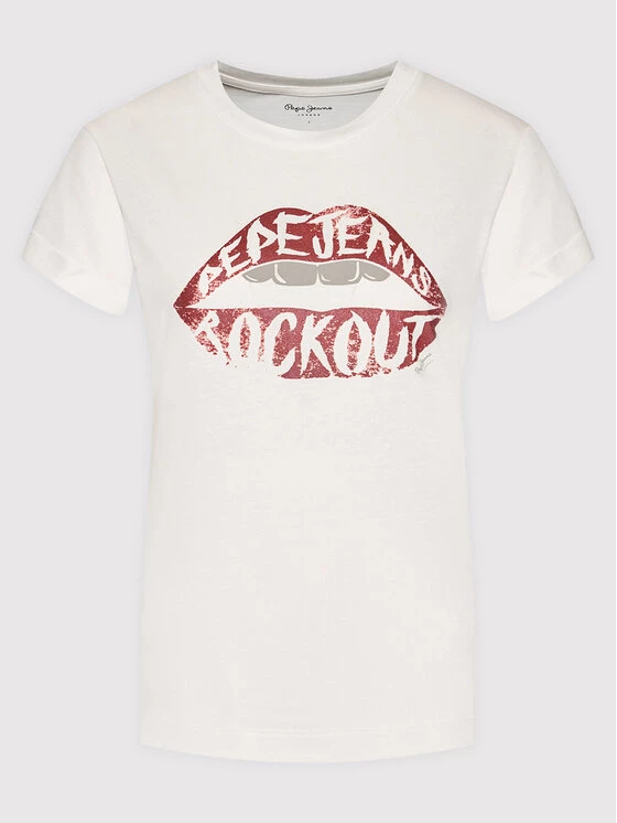 Pepe Jeans Γυναίκες T-shirts T-Shirt Lips PL505005 Λευκό Regular Fit